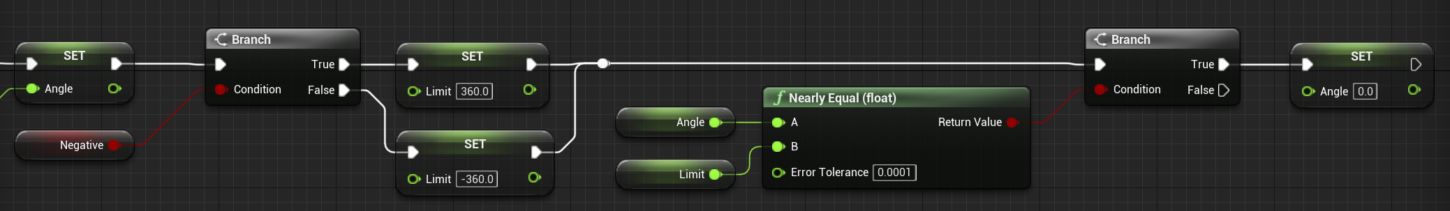 앵글을 계속 감산/가산하며 시간이 지나면 각도가 360도 혹은 -360도를 지나는 순간이 온다.