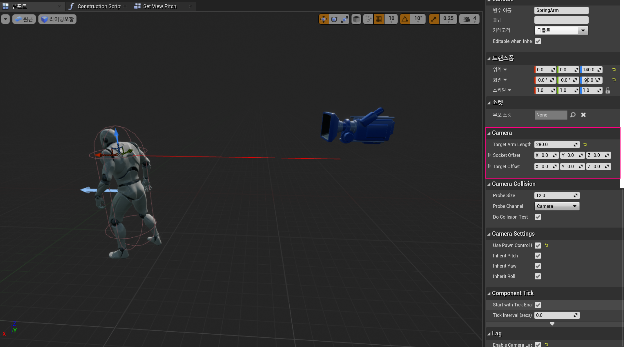 Spring Arm 컴포넌트에는 Socket Offset과 Target Offset인 두 개의 오프셋을 설정할 수 있다.