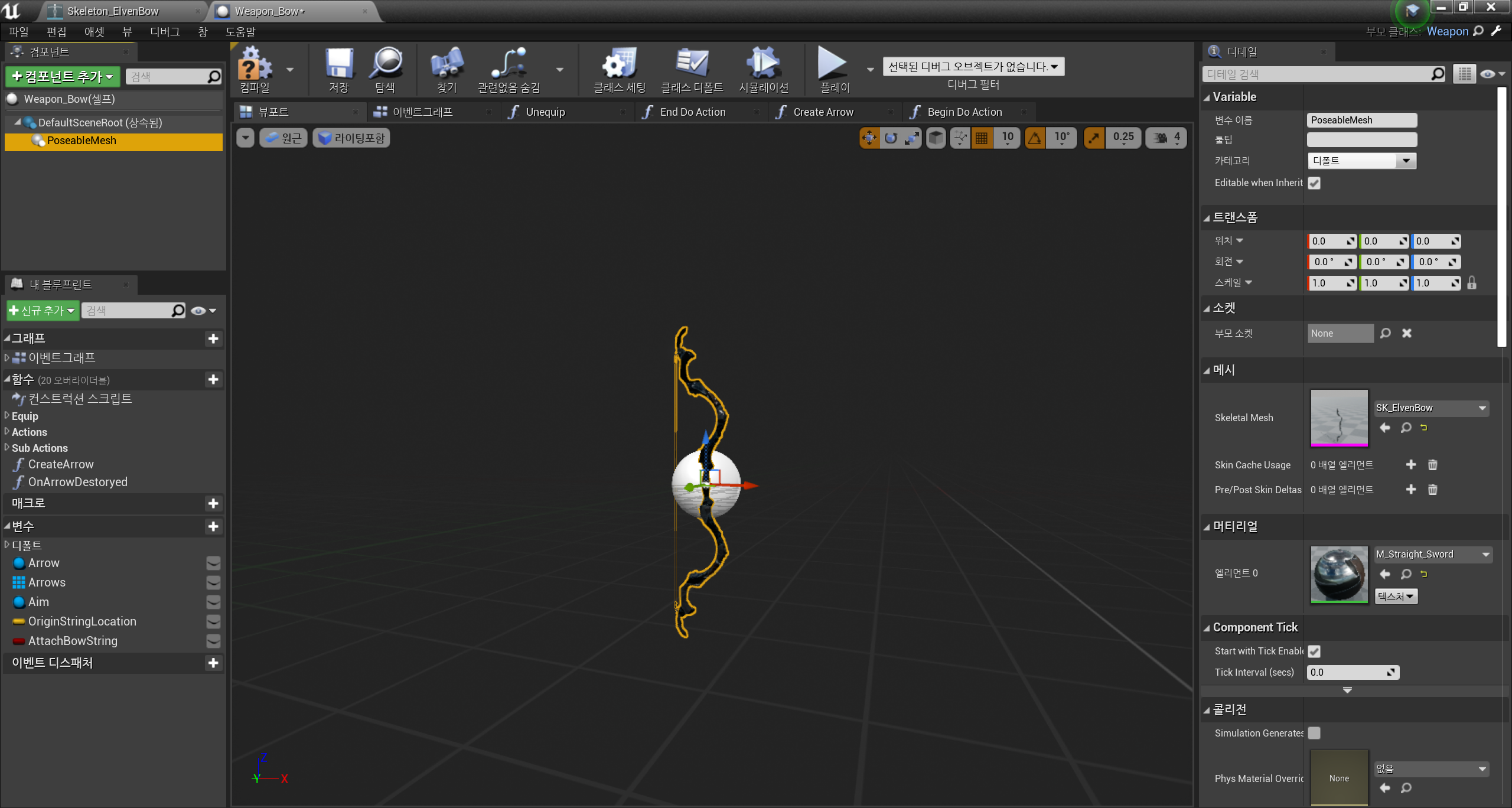 활의 Mesh를 변경하기 위해 활 블루프린트에 PoseableMeshComponent를 추가하였다.
