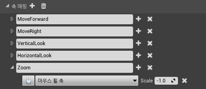 언리얼 게임 내에서 마우스 휠을 이용한 줌인/줌아웃 기능을 구현해보았다.