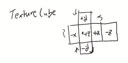 이제는 Texture Cube라는 것을 렌더링 해 볼것인데, Texture Cube는 한장인데, 박스를 펼친 모양처럼 생겼다.