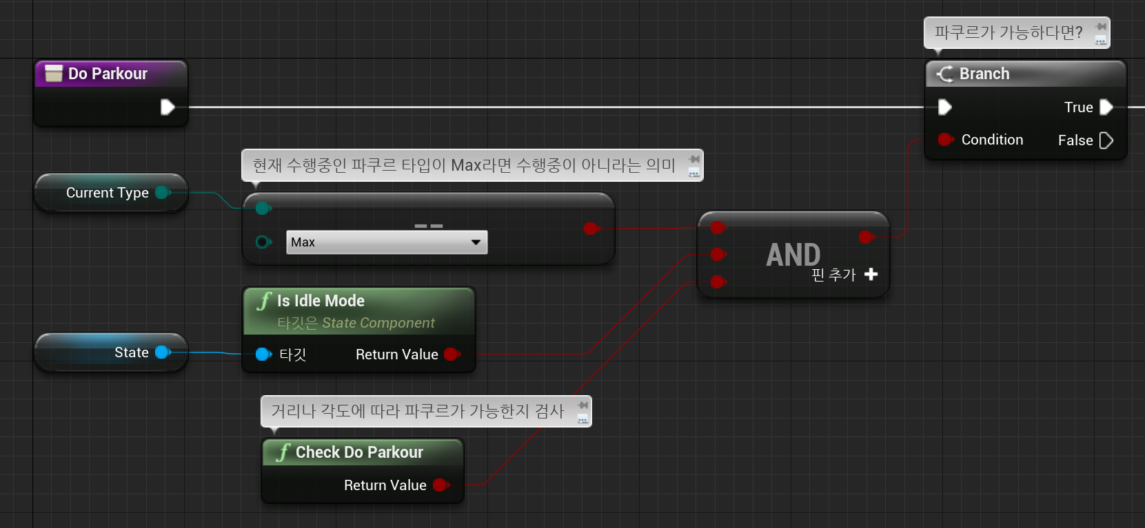 첫번째로, 파쿠르 상태 열거형에서 Type이 Max라면 현재 파쿠르가 아닌 상태이므로 파쿠르 가능한 상태이고,