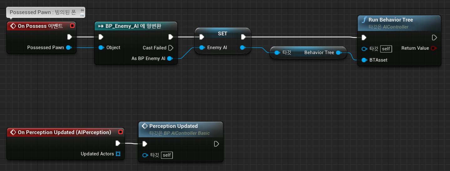 AI Controller의 AIPerception 컴포넌트 초기화가 모두 끝나면 본격적으로 감지를 시작하는 블루프린트를 작성해보았다.