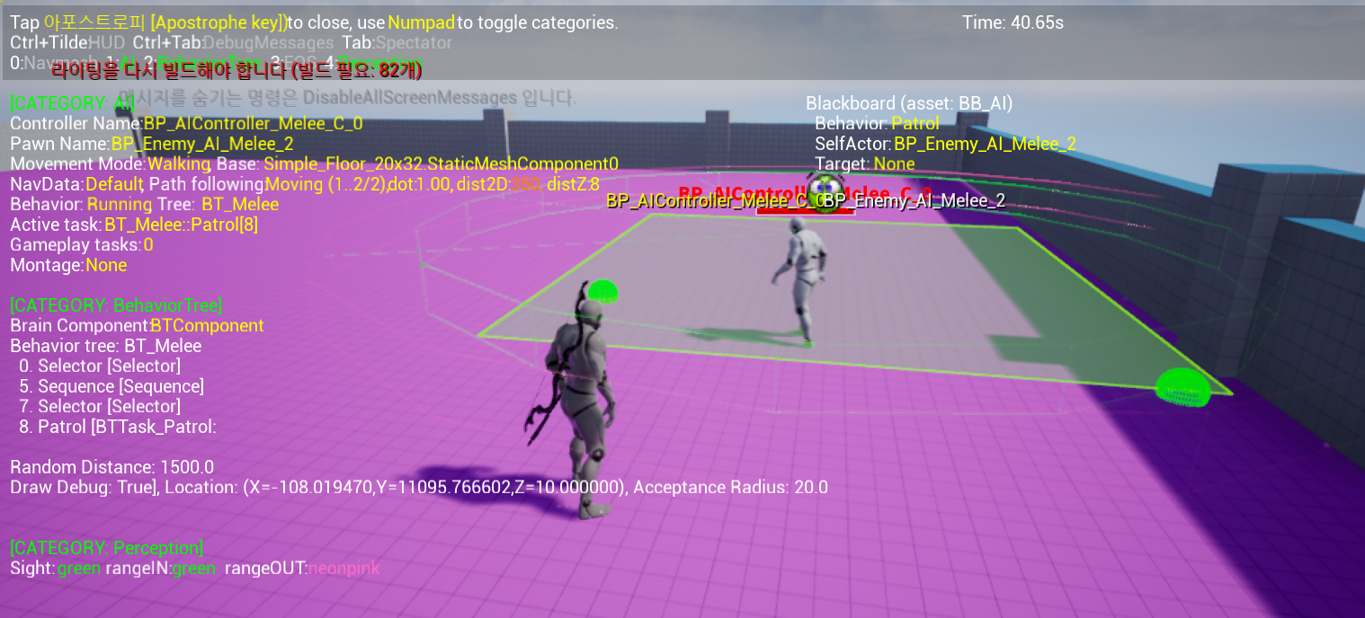 이때, 순찰은 랜덤한 위치로의 순찰 경로를 가지고, 해당 경로를 따라 움직이도록 구현하였다.