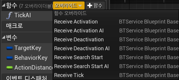 비헤이비어 트리에서 서비스를 이용할 때는 AI가 붙은 함수로 사용하고, AI가 안붙은 것은 비헤이비어 트리 외부에서 (Controller등) 직접 서비스를 Call 해줄 때 사용한다.