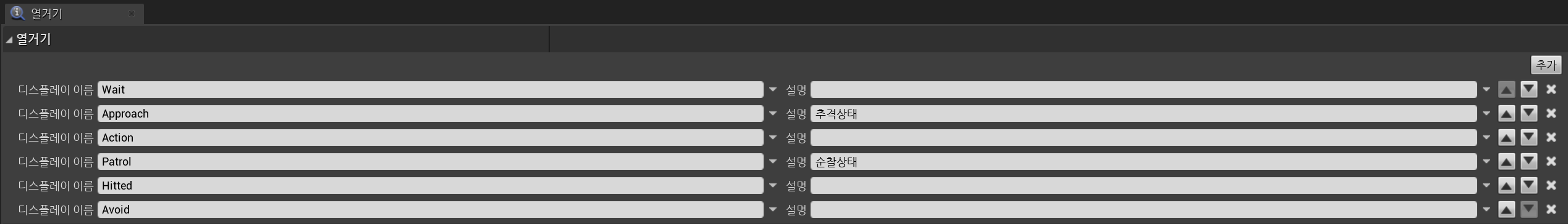 우선, AI의 상태값은 Enum 자료형으로 총 6가지 상태를 만들었다.