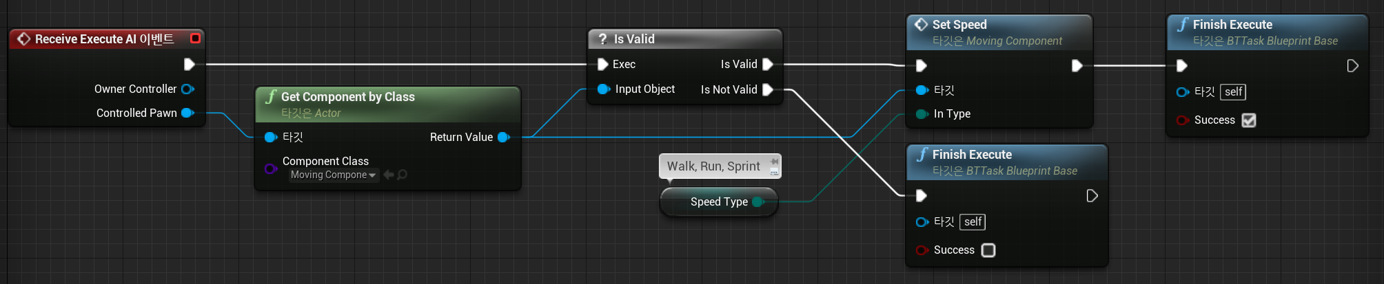 비헤이비어 트리에 존재하는 Speed는 Enemy의 상태에 따라 이동하는 속도를 조절하기 위한 Task 클래스이다.