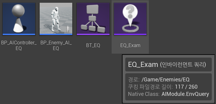 즉, 정말 간단히 말해 EQS는 특정 공간을 찾는 기능인데, 내가 구현하고 있는 Enemy AI에서는 플레이어와 Enemy의 간격이 500 안으로 가까워질 때 플레이어의 뒷 지점으로 순간이동(Warp)하기 위해 사용할 것이다.