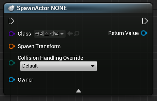 SpawnActor는 좀 특별한 함수인데, 타깃이 나오지 않는 함수이다. 저번 시간에 공부했듯이 타깃이 나오지 않는다면 전역함수일 수 있고, 그게 아니라면 World에 존재하는 함수인 경우이다. Spawn Actor는 액터를 World에 배치하므로 World 함수이다.
