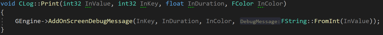 InDuration은 뷰포트에 띄울 지속시간, InColor는 글씨 색상을 의미한다.