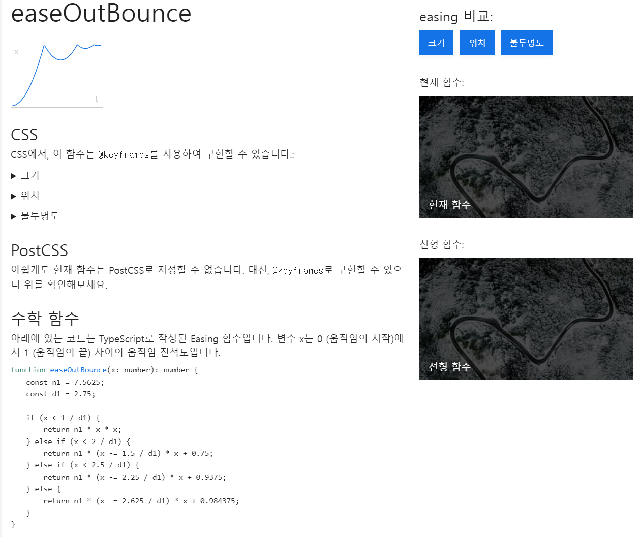 Easing 함수를 만들어주는 사이트에 다양한 곡선이 존재하고, 그에 대한 수식까지 제공해주고 있다. 이를 활용하여 Easing 곡선대로 Arrow가 흔들리도록 적용시켜보았다.