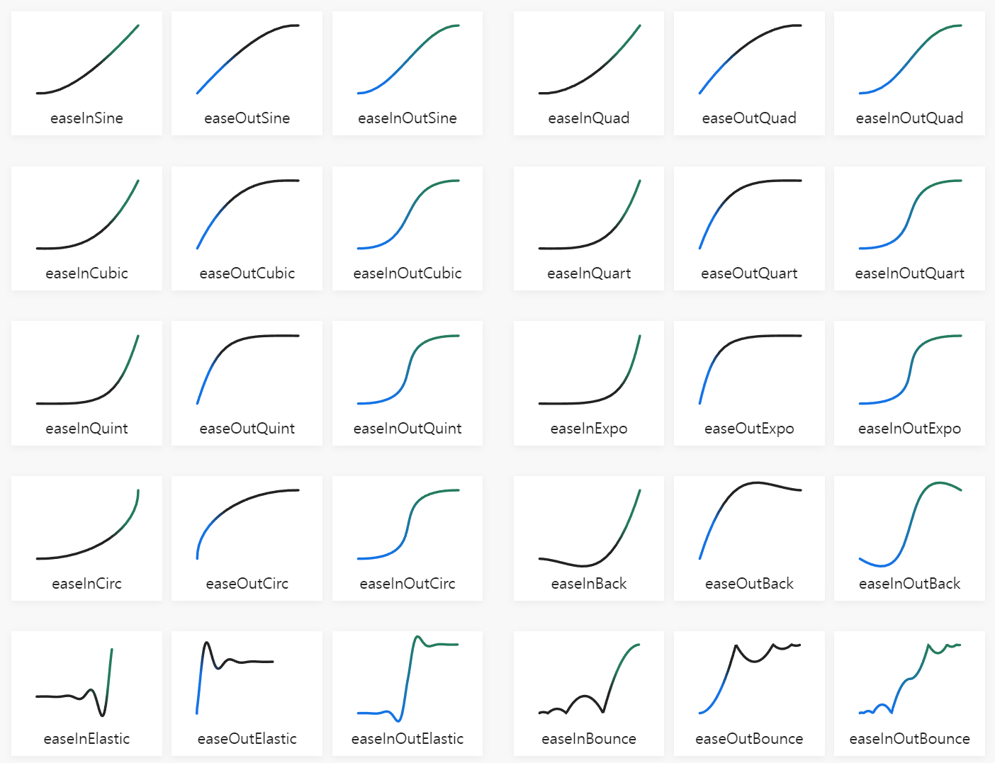 Easing functions specify the speed of animation to make the movement more natural. Real objects don’t just move at a constant speed, and do not start and stop in an instant. This page helps you choose the right easing function.
