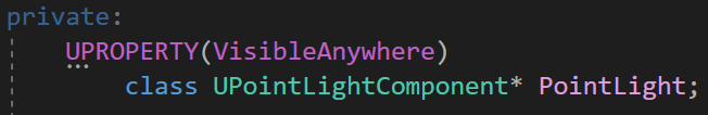 UPointLightComponent 객체를 사용하기위해 Components에 존재하는 PointLightComponent 헤더를 추가하였다.