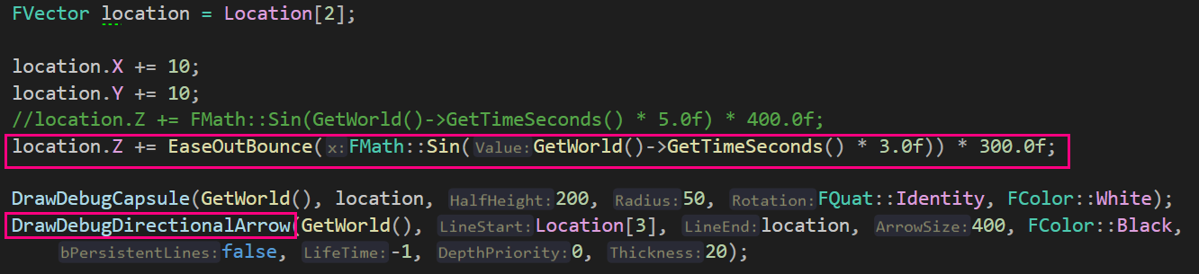 실행 결과, Arrow가 사이트의 곡선대로 흔들리는 모습을 확인할 수 있었다. (더불어 깜빡거리는 왼쪽의 Point Light도 확인해보자)