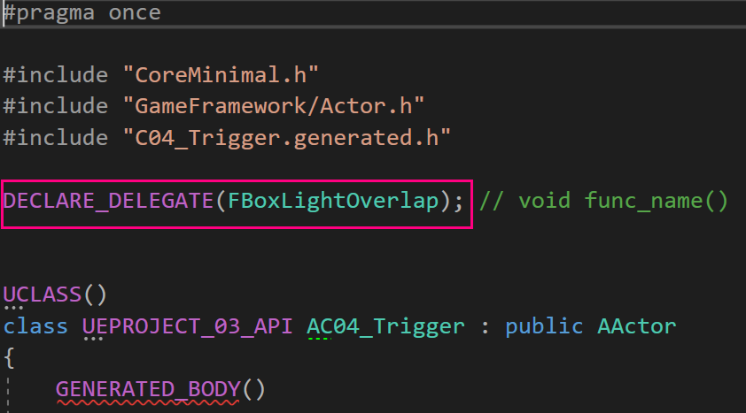 델리게이트의 자료형명은 관례상 F로 시작하여 FBoxLightOverlap으로 이름을 지정해주었다.