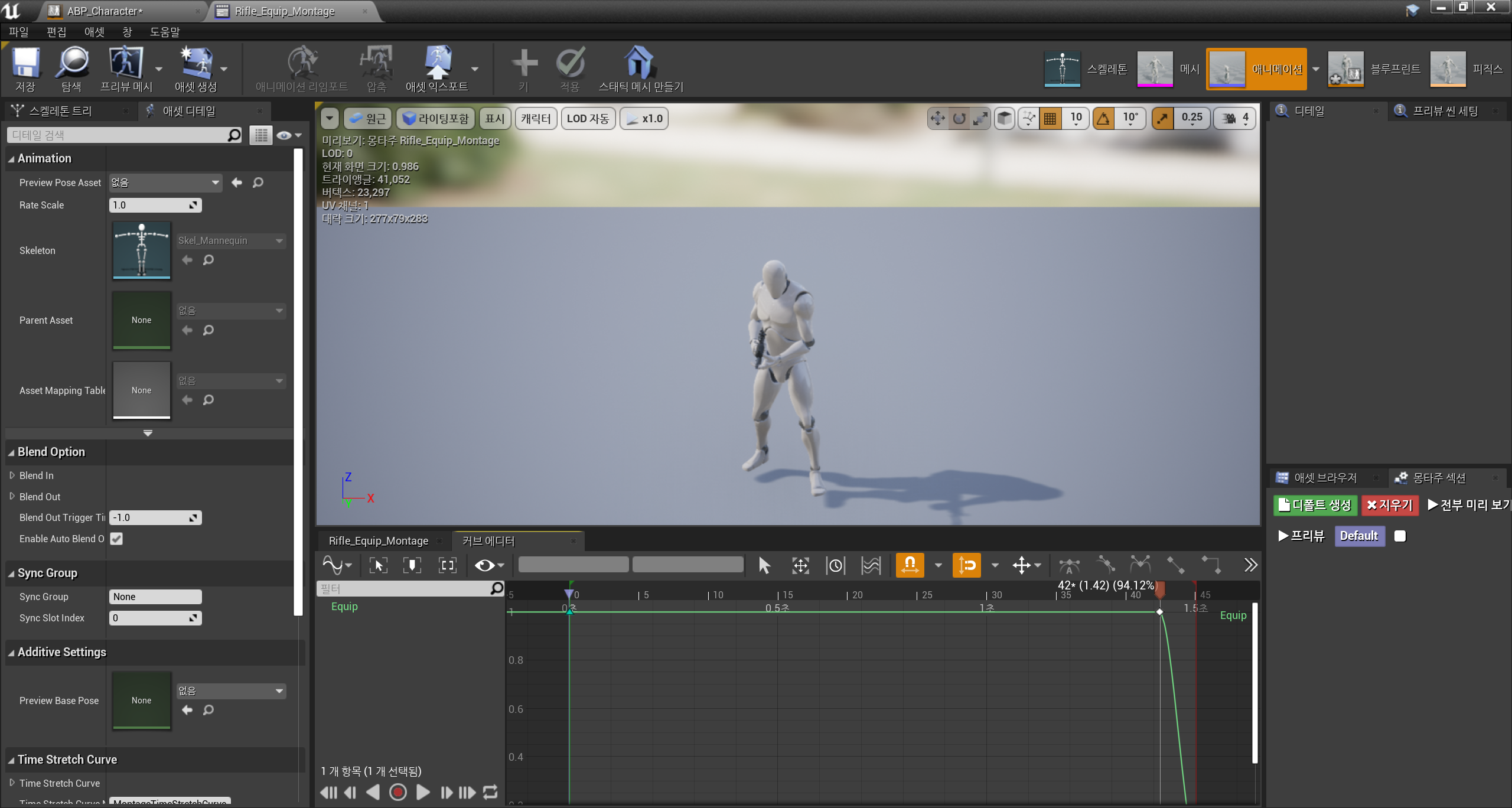 이를 해결하기 위해 Equip 몽타주에 Curve를 생성하여 0일 때 IK가 적용되고, 1이면 IK가 적용되지 않도록 커브를 추가해주었다.
