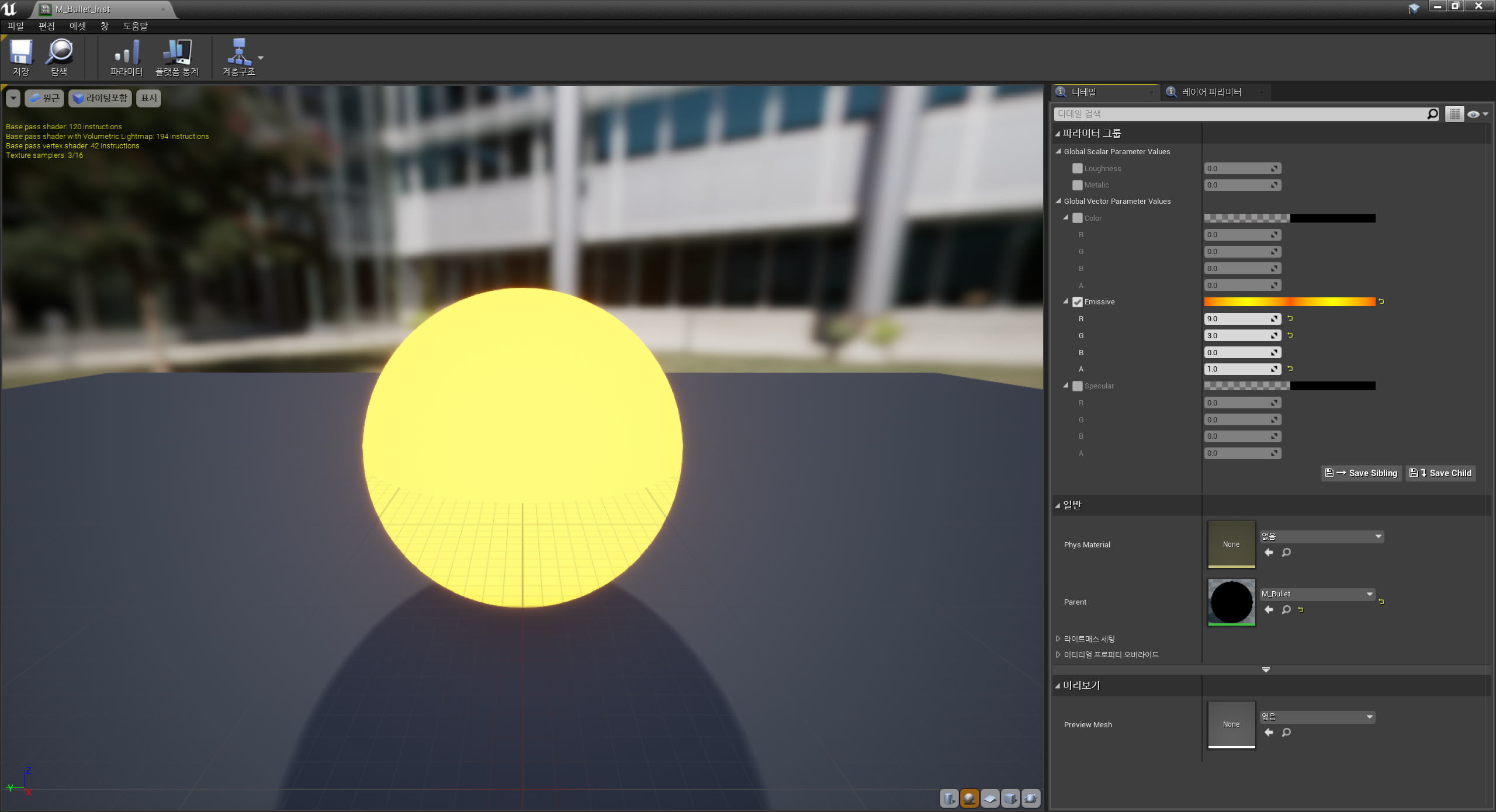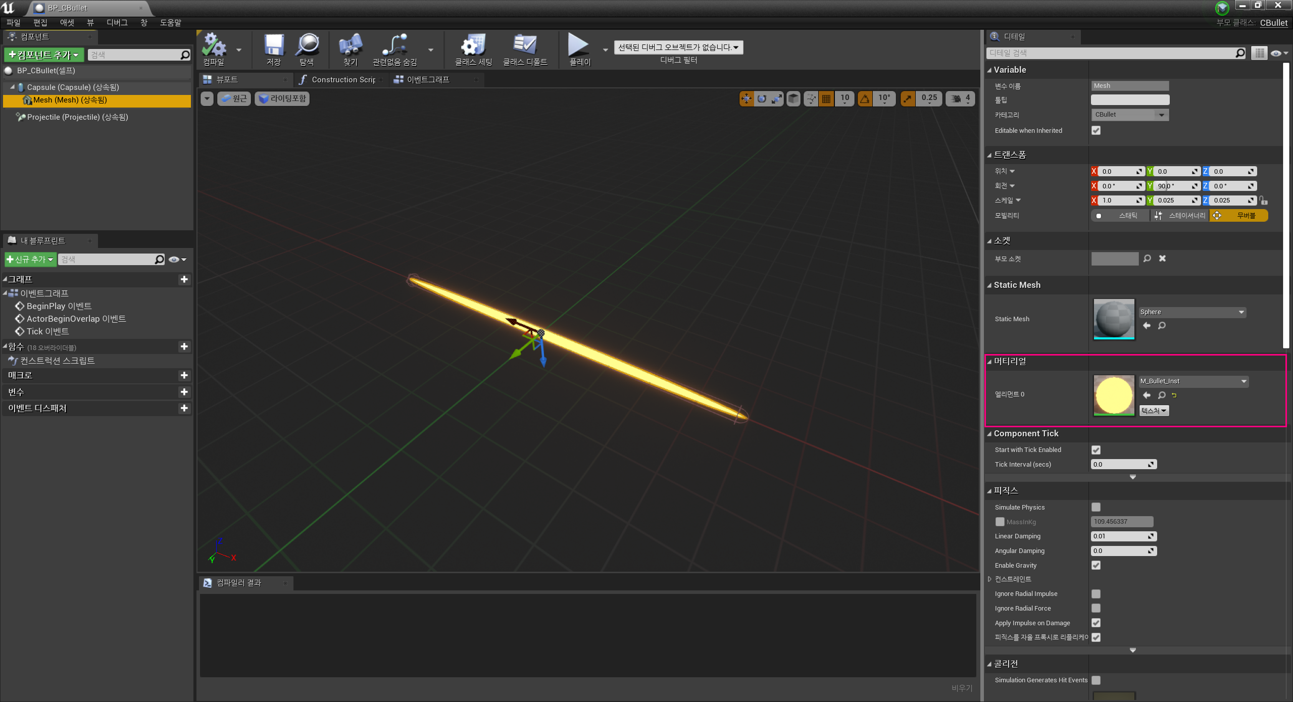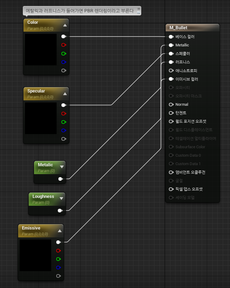 따라서 위와 같은 M_Bullet 머티리얼을 생성하였다.