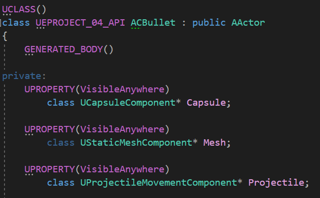 Bullet 클래스를 생성하여 Projectile을 가지고있는 총알을 만들었다.