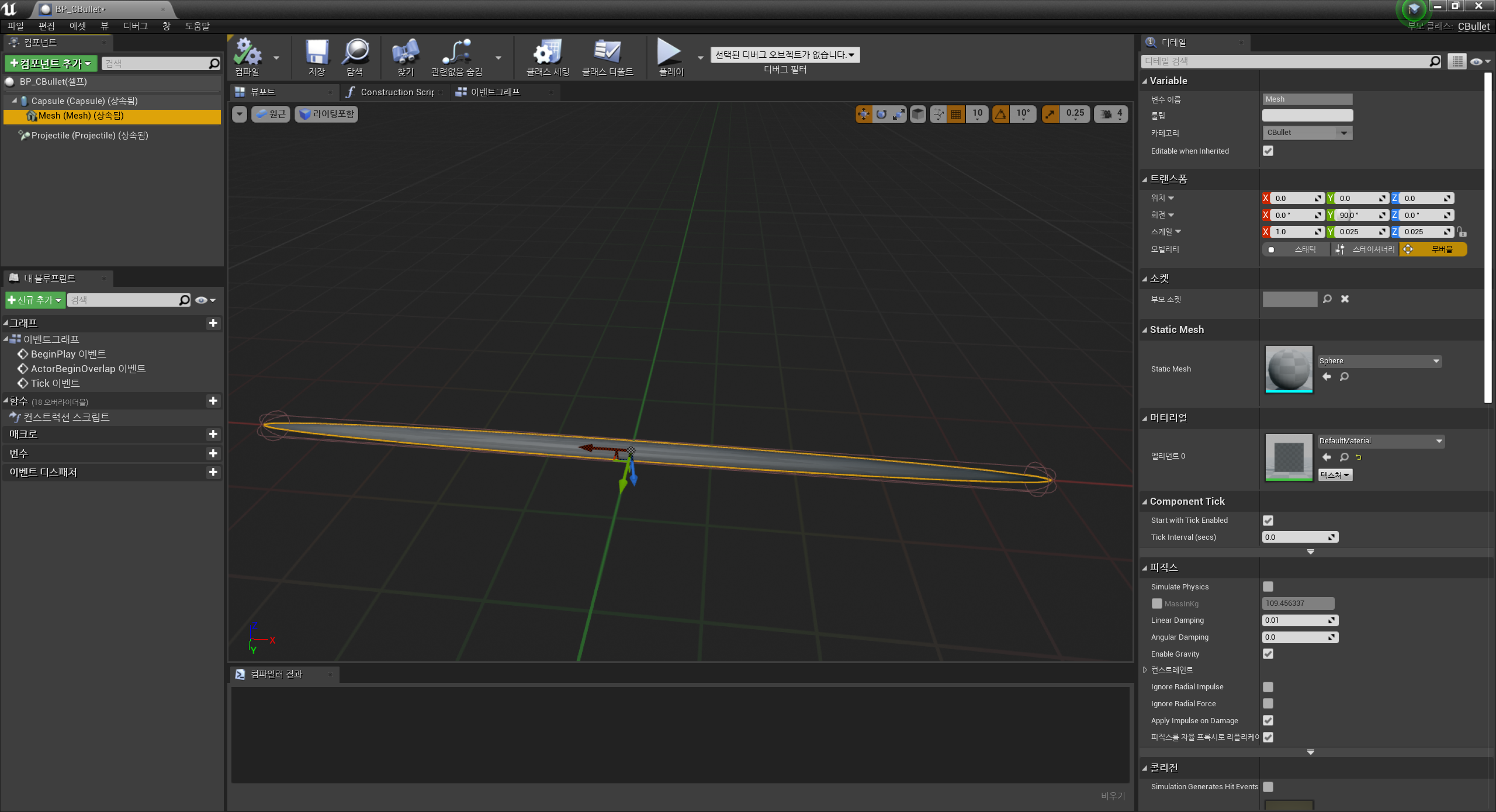 총에서 발사되는 총알을 직접 만들어보았다.