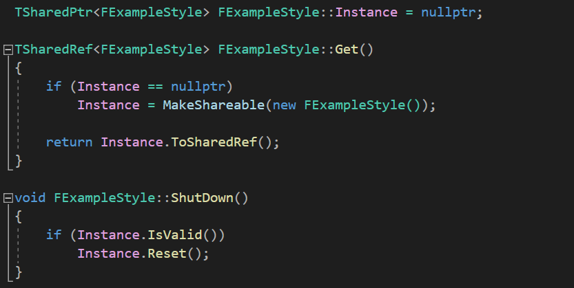 Instance 변수는 static이므로 전방선언 해준 뒤, 싱글톤 패턴에 맞도록 Instance가 nullptr이라면 새롭게 생성하고, 아니라면 Instance 객체를 Ref 형식으로 반환해주었다.
