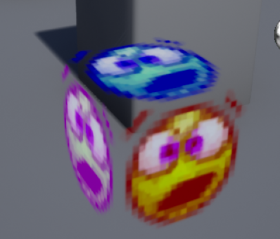 Vertex Color 를 입력데이터로 받은 머티리얼을 블루프린트에 설정하면 위와 같이 각 면마다 설정했던 색상값들이 정상적으로 출력되는것을 확인할 수 있었다.