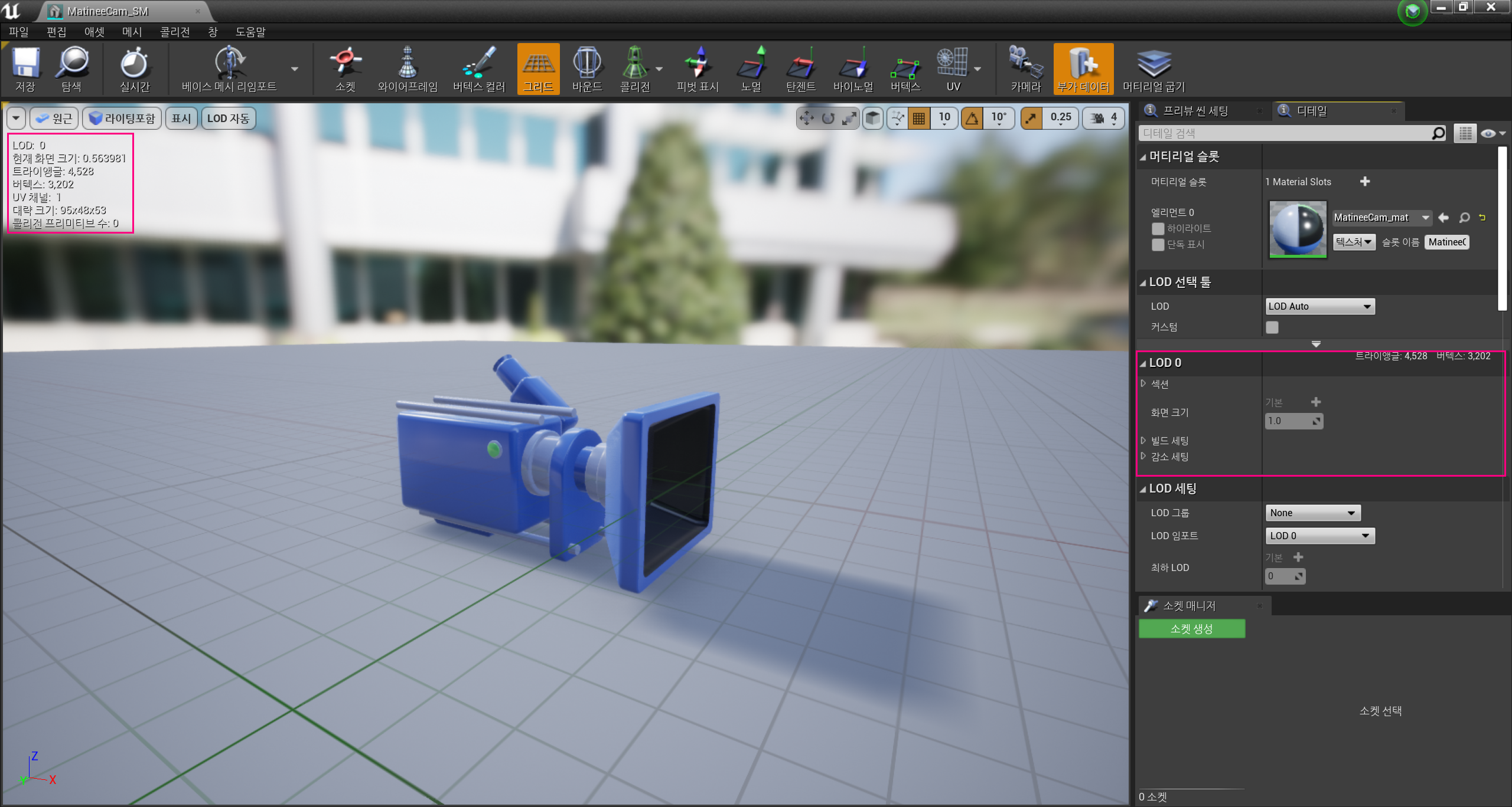 나는 모든 객체의 0번째 LOD 데이터로만 RenderData를 처리하는 코드를 작성하였다.