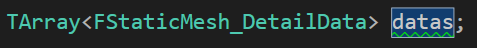 Mesh의 정보들이 잘 추출되는것을 확인했으니 실제 Save 파일로 전달할 데이터들을 FStaticMesh_DetailData라는 구조체로 저장하였다. Mesh 정보들과 Mesh의 부피인 Extent값과, Radius를 추가로 저장해주었다.