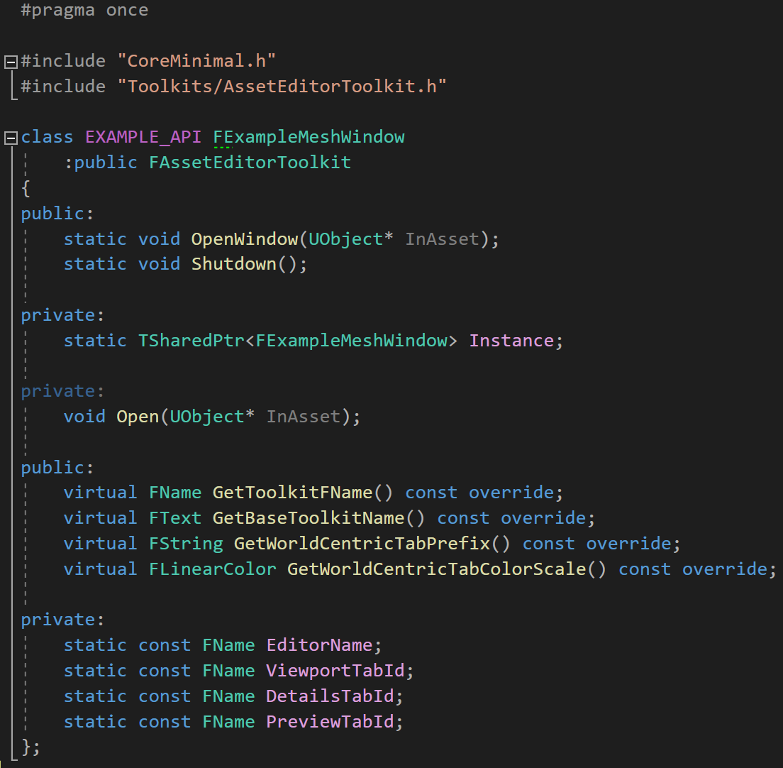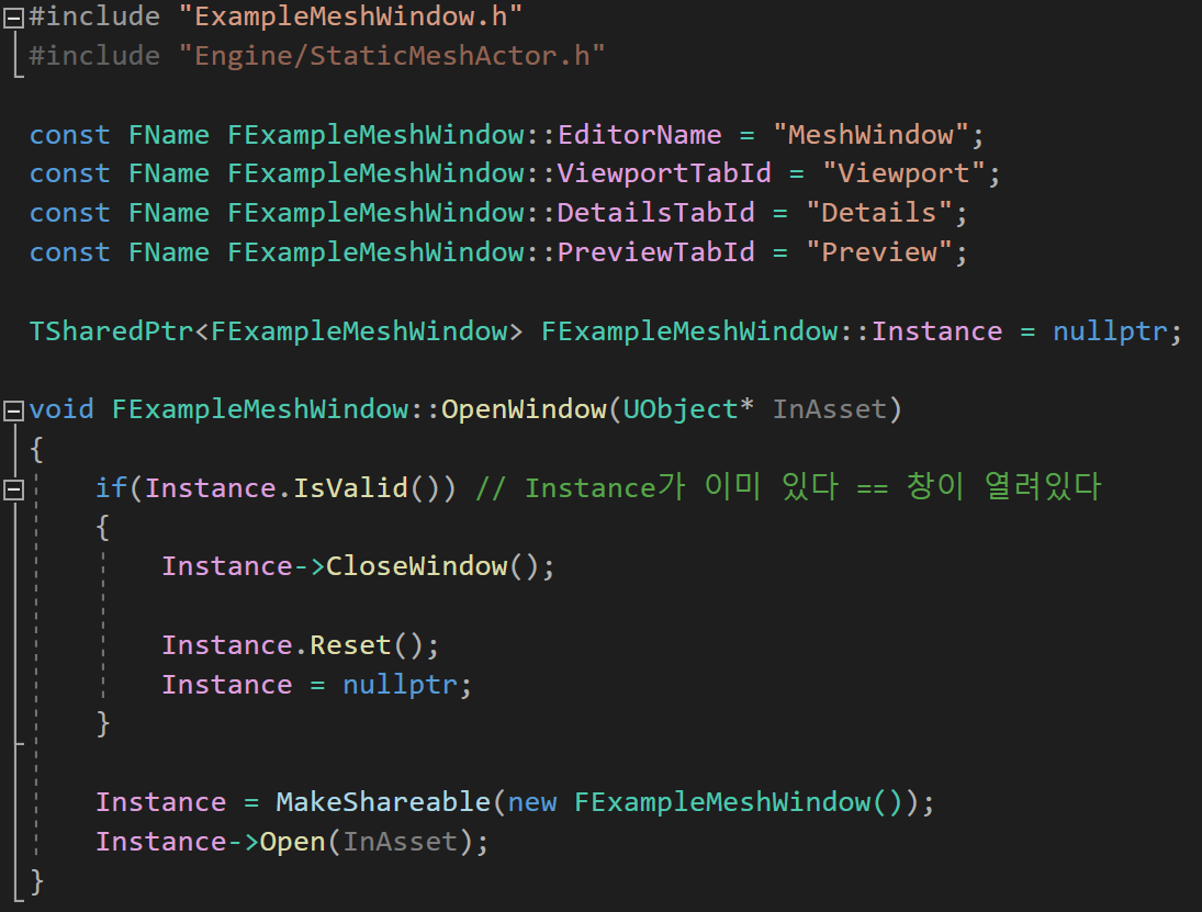 2️⃣ Window 객체 생성하기 - ExampleMeshWindow : FAssetEditorToolkit