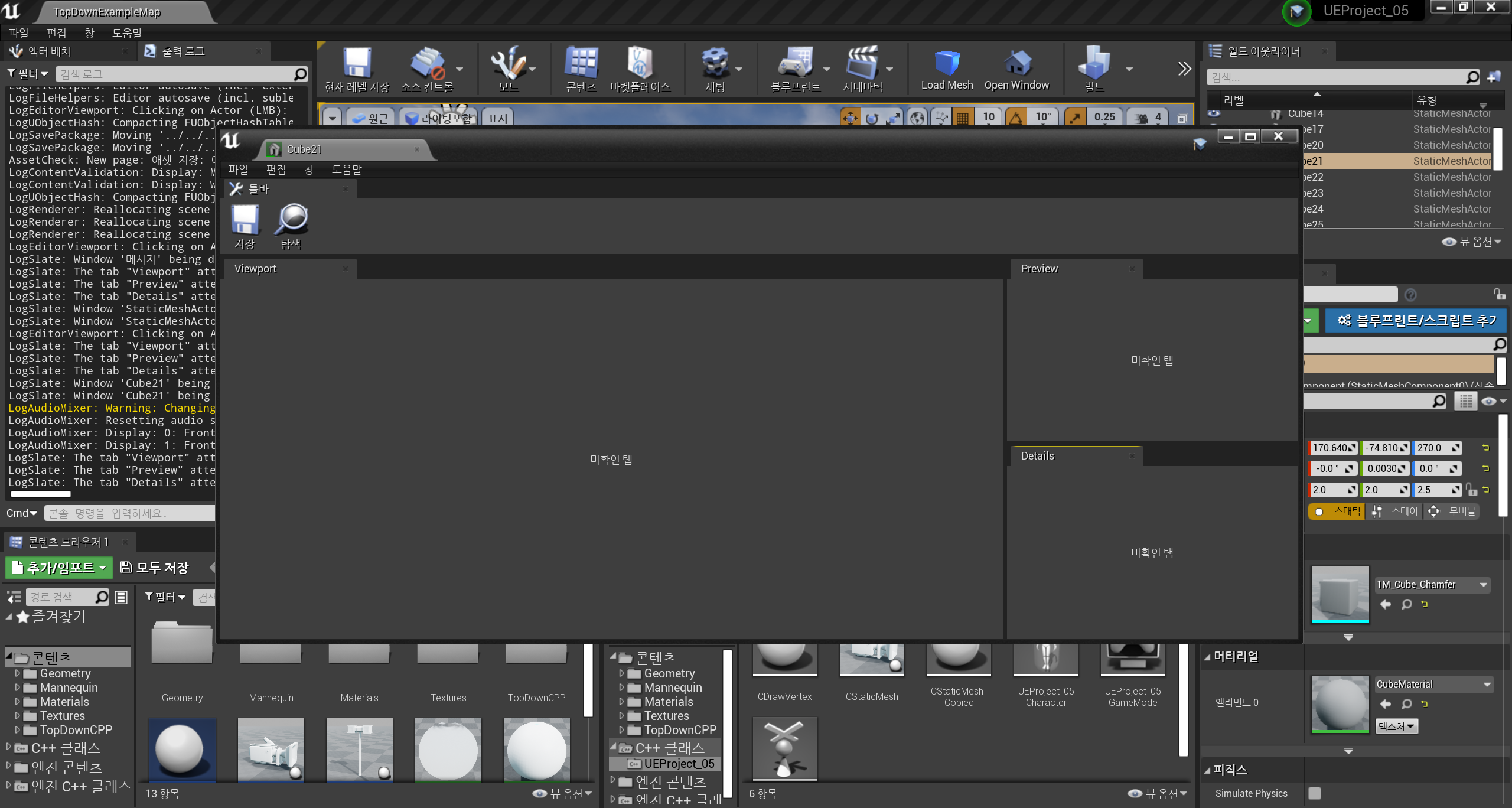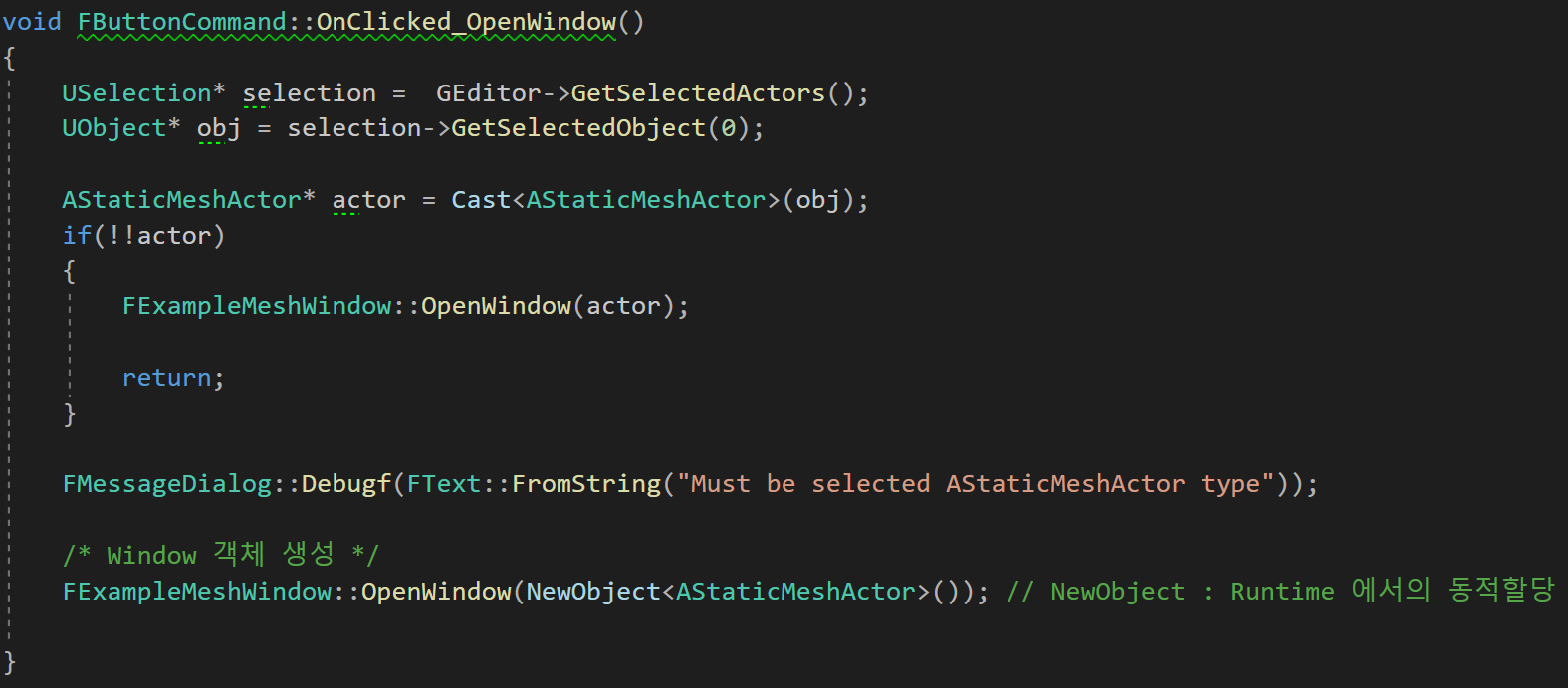 선택한 액터가 존재한다면 해당 액터를 OpenWindow 함수로 넘겨주고, 존재하지 않는다면 StaticMeshActor를 새롭게 생성하여 OpenWindow 함수로 넘겨주었다.