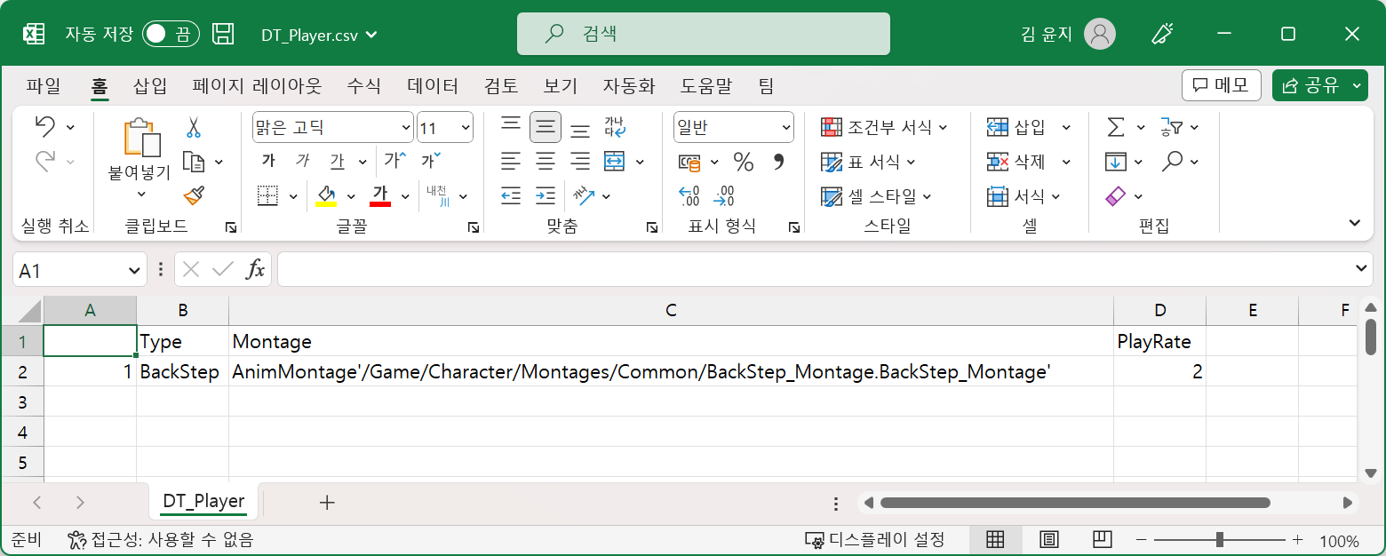 Player의 상태에 따른 몽타주를 담는 DT_Player.csv 파일을 제작하였다.