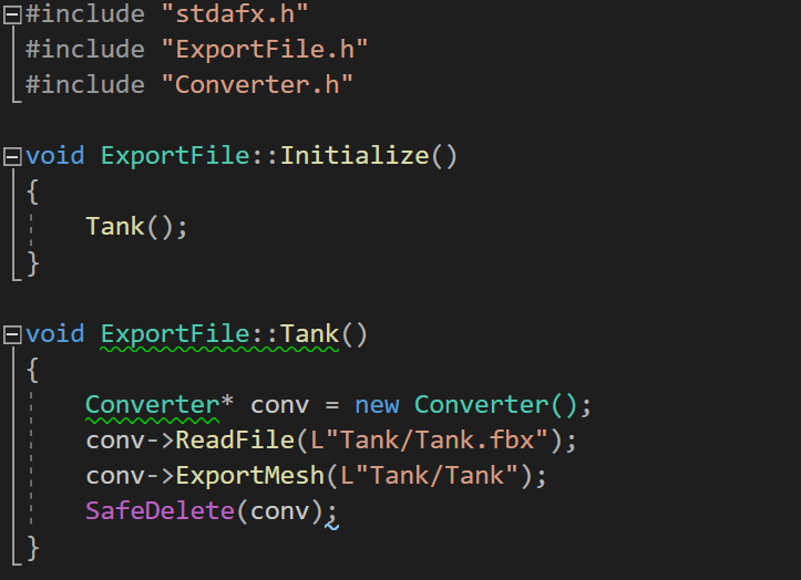 작성된 ReadFile 함수를 이용하여 aiScene 객체에 읽어들인 파일 정보를 저장해두었고, Export Mesh 함수를 작성하여 .mesh 형식으로 파일을 저장하는 기능을 구현해보았다.
