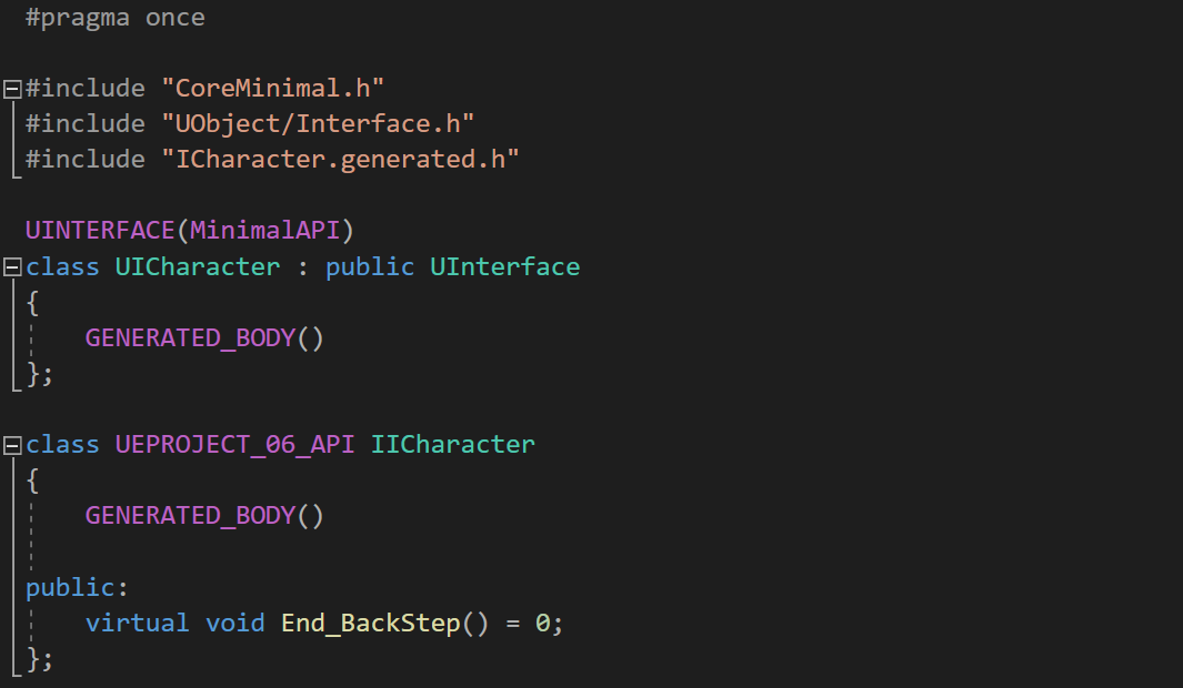 그런 의미로 UINTERFACE의 속성인 MinimalAPI는 최소한의 코드만 작성하겠다는 의미이다.