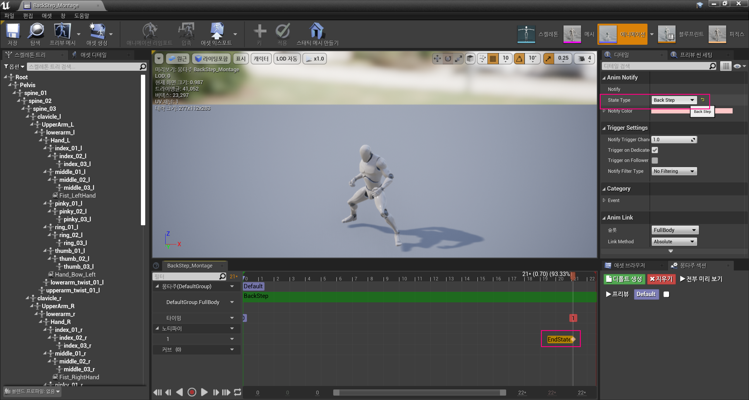 컴파일 후 BackStep 애니메이션의 몽타주에 EndState 노티파이를 추가한 뒤, State Type을 BackStep으로 설정하였다.