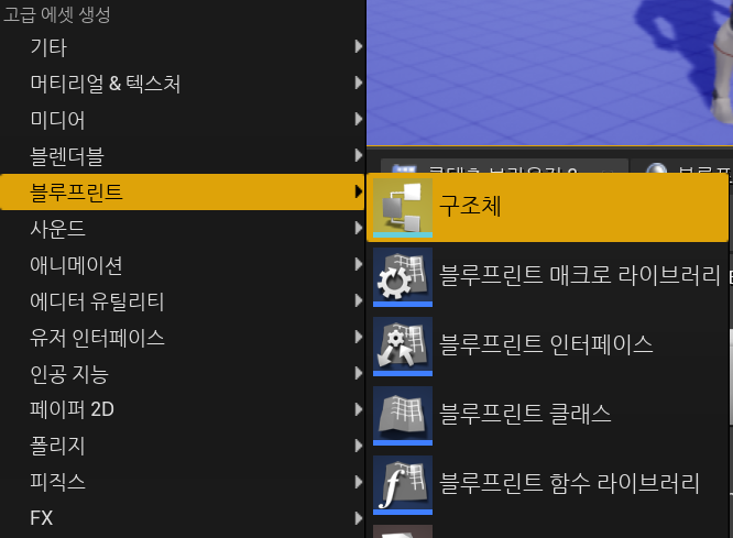 ContextMenu의 Category는 위 사진의 기타, 머티리얼&텍스처, 미디어,,등등의 카테고리 목록을 나타내고, GetName 함수에서 말하는 Name은 구조체, 블루프린트 매크로 라이브러리, 블루프린트 인터페이스와 같은 카테고래 내용의 이름을 말한다.