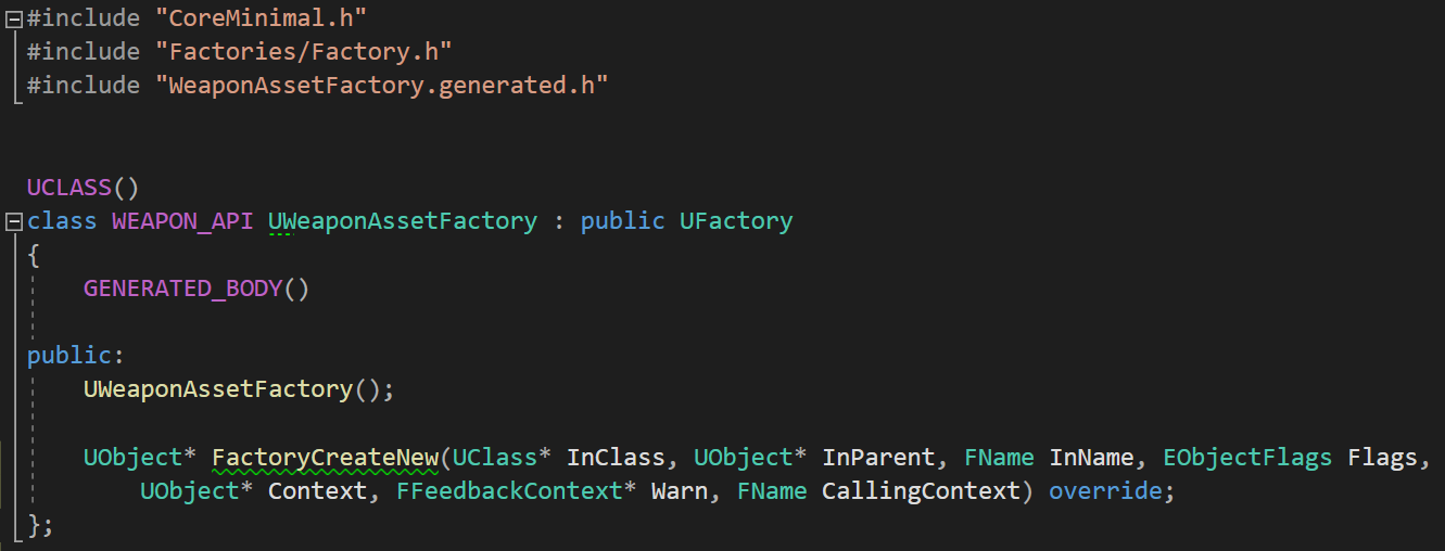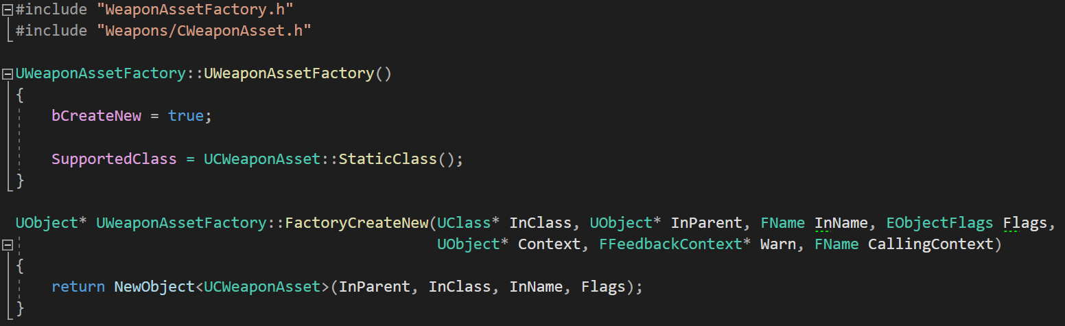 FactoryCreateNew 함수는 새로운 Factory를 만들어 UObject로 반환해주는 함수로, Factory 클래스의 가상함수를 오버라이드하였다.