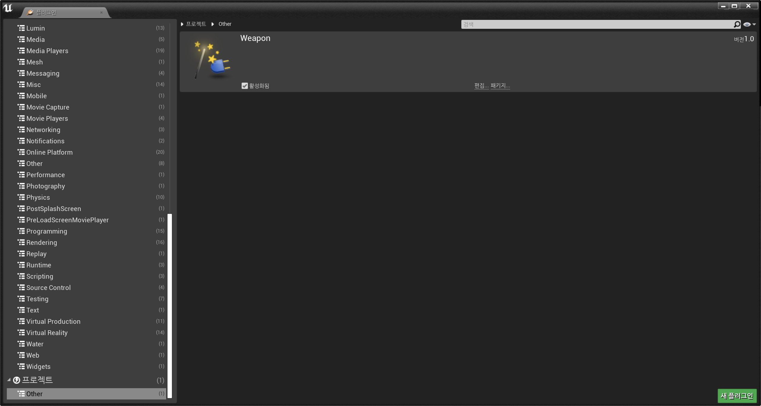 기본 모드로 Weapon 이라는 이름의 플러그인을 새로 생성한 뒤,