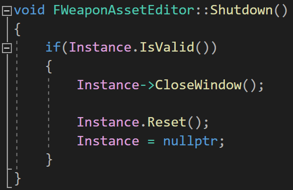 Shutdown 함수는 Instance가 존재한다면 창을 닫고 NULL로 초기화해주었다.