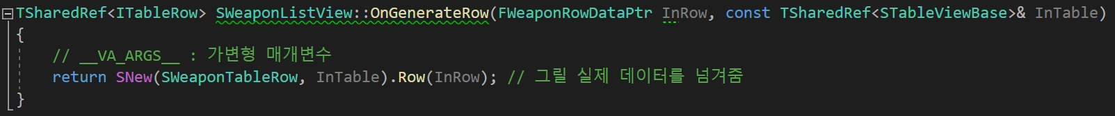 이때 행은 제작한 SWeaponTableRow 클래스를 InTable의 Row로 넘겨주었다.