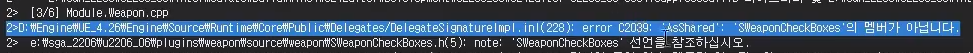 이때 AsShared 함수는 상속구조의 문제점을 발생시키는데, AsShared 함수가 무조건 부모로 가서, SWeaponCheckBoxes 클래스의 델리게이트와 주소가 맵핑될 수 없어서 에러가 발생한 것이다.