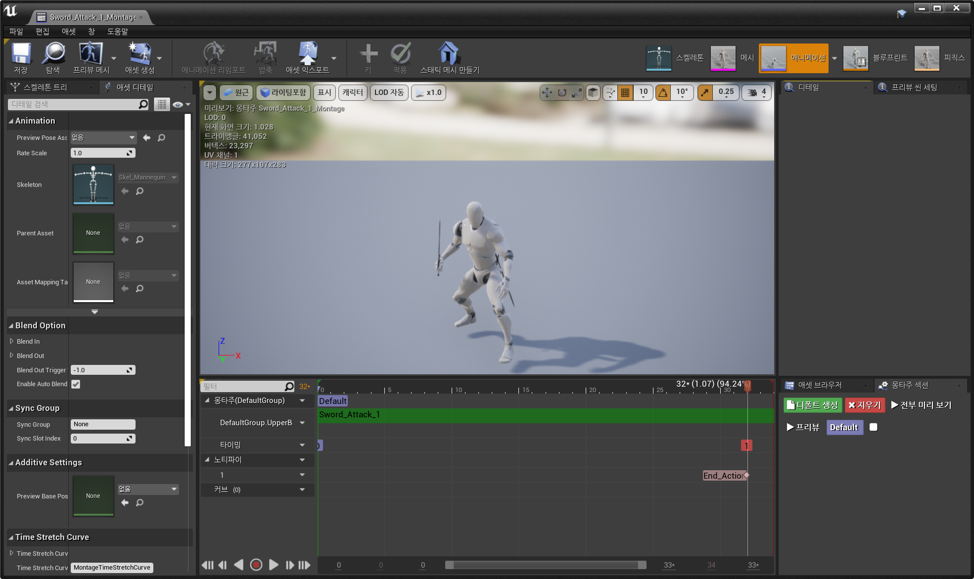 애니메이션 몽타주 애셋 작업 방식과 어디에 사용할 수 있는지에 대한 설명입니다.