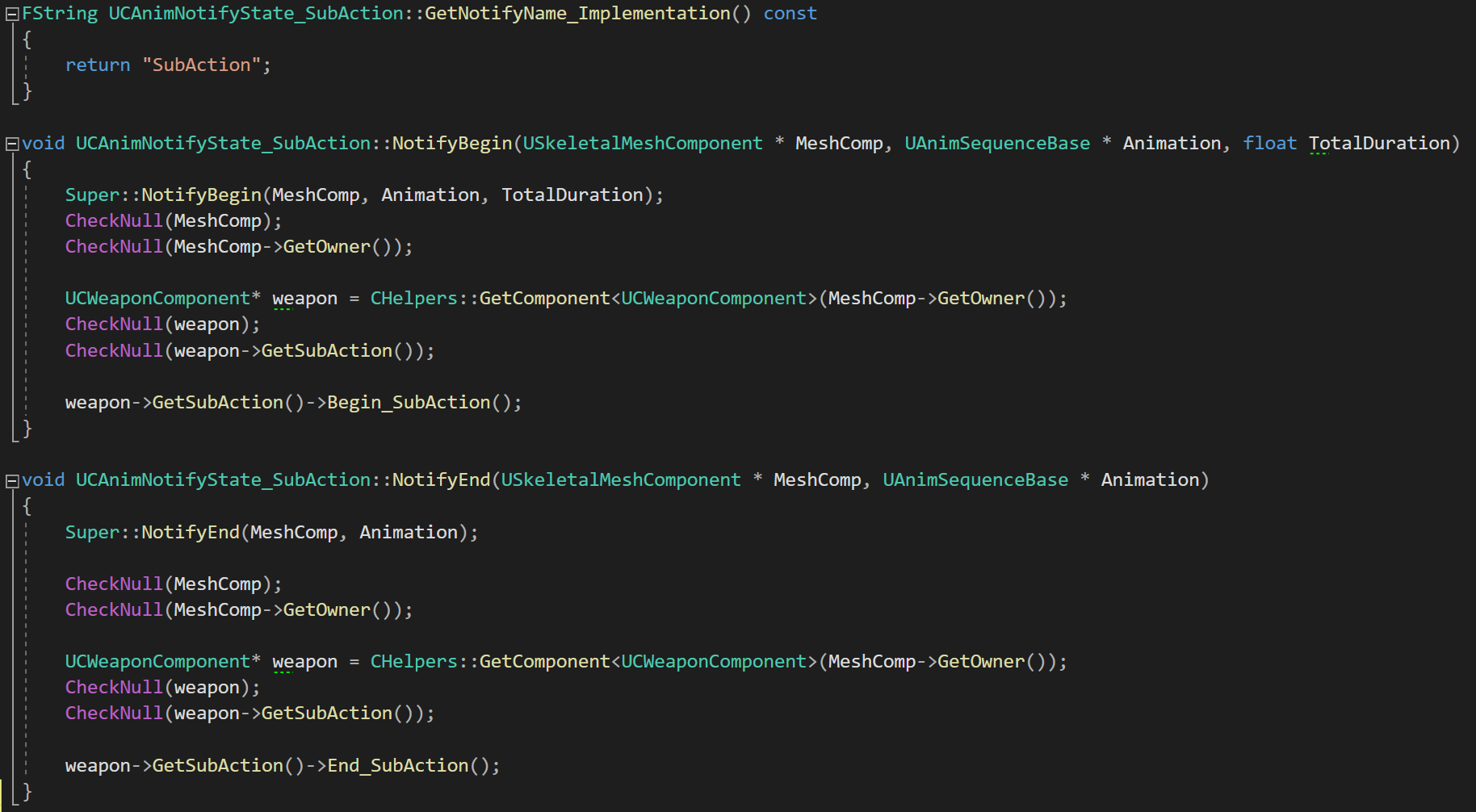 또한 SubAction의 시작(Begin)과 끝(End)을 지정하여 사용할 수 있도록 Notify State로 구현하였다.
