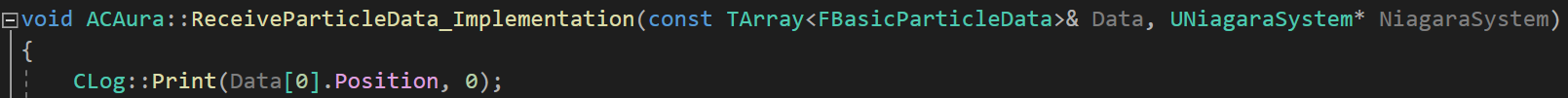 이후, ReceiveParticleData 함수에서 Data[0]번째의 Position값을 받아 출력해보면