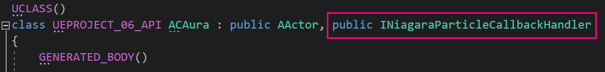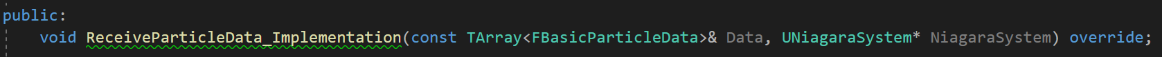 나이아가라의 데이터를 사용하기 위해 INiagaraParticleCallbackHandler 를 추가 상속받아 주었다.