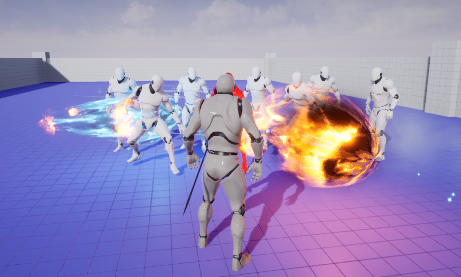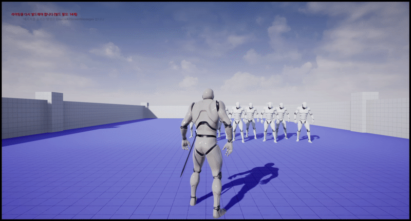 성공적으로 플레이어의 공격 시 Rotate_Object가 스폰되며 플레이어 주변을 회전하고, 해당 액터에 충돌된 Enemy Character들에게 데미지가 입혀지는 것을 볼 수 있다.