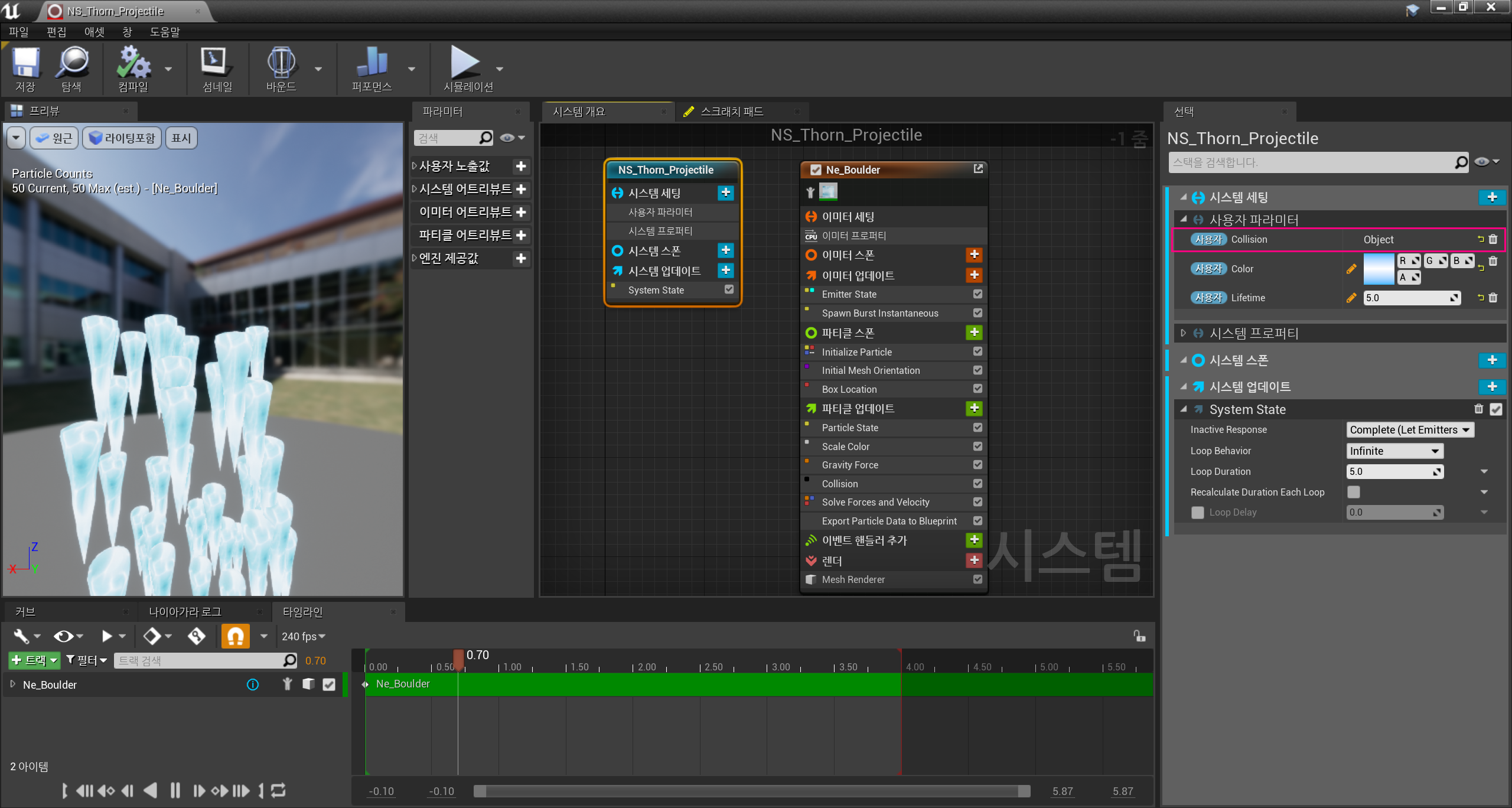 사용하고자 하는 Niagara Effect객체에 사용자 파라미터로 Collision을 추가해두었다.