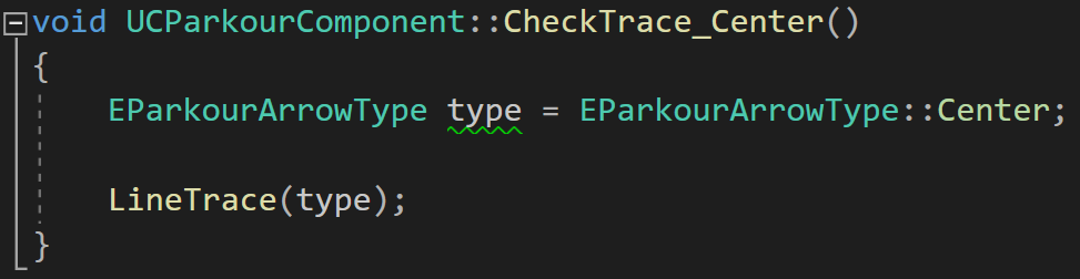 Parkour Component에서는 수행할 Parkour의 종류를 EParkourType 열거형으로 선언하였고,