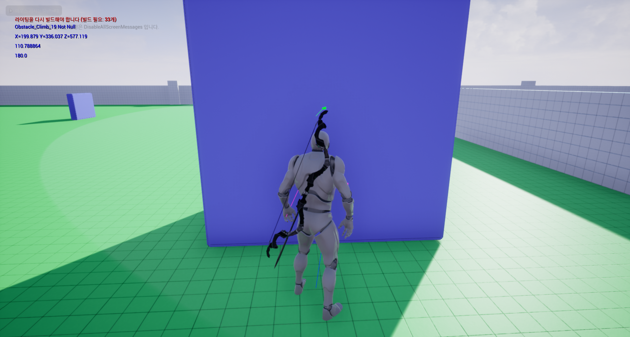 Climb은 높은 벽을 오르는 동작이므로 제대로 벽을 오르도록 캐릭터의 위치와 방향을 HitObstacle의 ImpactPoint 앞으로 맞춰놓는다.
