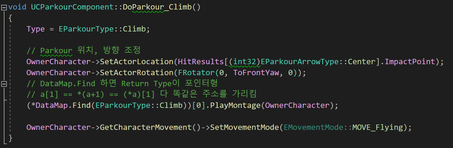 Check_ClimbMode 함수에도 통과했다면 실제 Parkour를 수행시킬 DoParkour_Climb 함수를 실행시킨다.