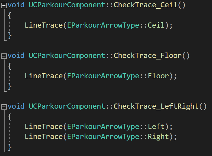 이렇게 CheckTrace_Center 함수가 끝나면 다른 Arrow의 충돌을 추가로 검사하며 실시간으로 Arrow에 충돌되는지를 검사하였다. 이후에는 충돌된 Arrow의 종류에 따라 어떤 Parkour 동작을 수행할 것인지 결정한다.