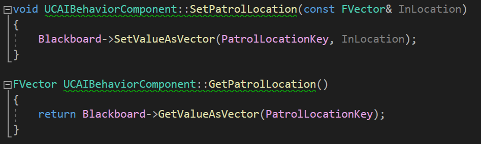 이러한 PatrolLocationKey값을 설정하고 가져올 수 있는 Set/Get 함수도 작성하였다.